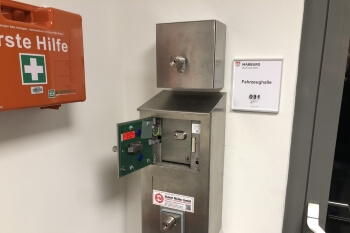 Ein Teil der ausführenden Firmen trafen sich, um sich die andauernden Probleme der Technik anzuschauen und eine einvernehmliche und funktionsfähige Lösung zu finden. An diesem Termin kamen zusammen: Nils Rose (Architektenbüro Schmidt & Strack), Waldemar Deuchert (EWT Ingenieure GmbH), Bernd Hormel & Steffen Franz (Hochbauamt Marburg), Christoph Felgenhauer (Fachdienst Brandschutz), Vertreter der Firmen Gringel GmbH, Hild-Moser Tore + Service GmbH, Balzer, Spie Lück GmbH und unser Kamerad Jan-Lennart Büttner.