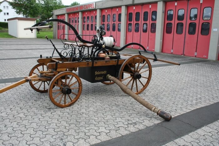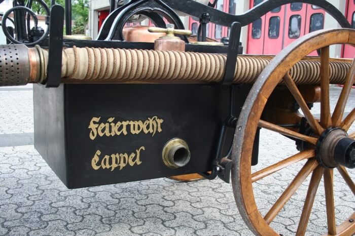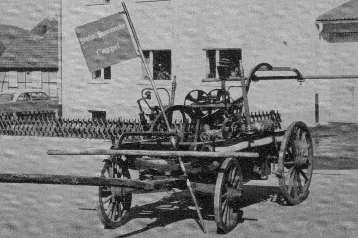 In der Feuerwehr Cappel war die Gespann- Handdruck und Saugpritze wahrscheinlich eines der ersten „Feuerwehrfahrzeuge“. Sie wurde 1988 / 1989 in 6 Monaten in vielen Stunden Arbeit aufgearbeitet und funktioniert noch heute einwandfrei.