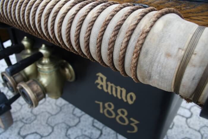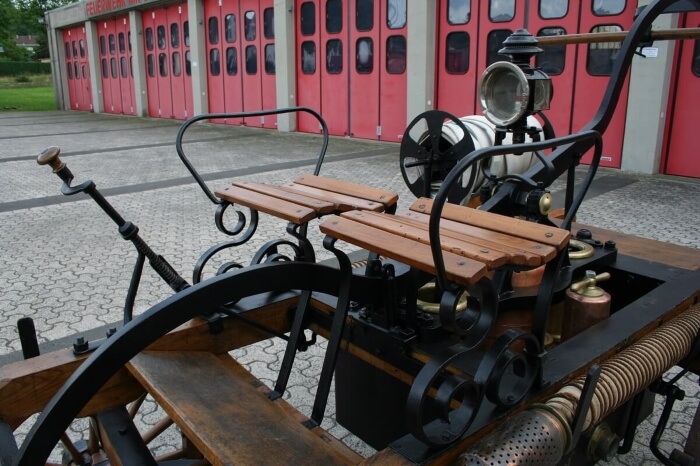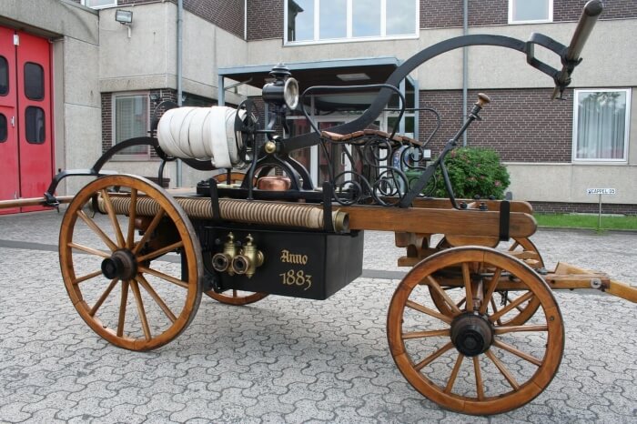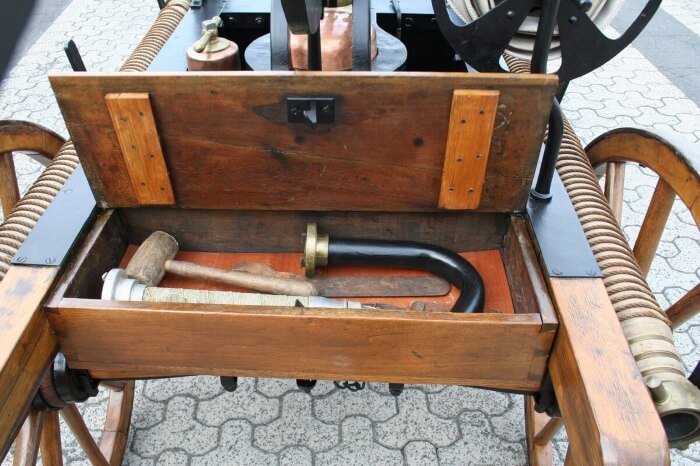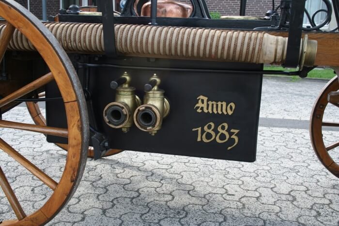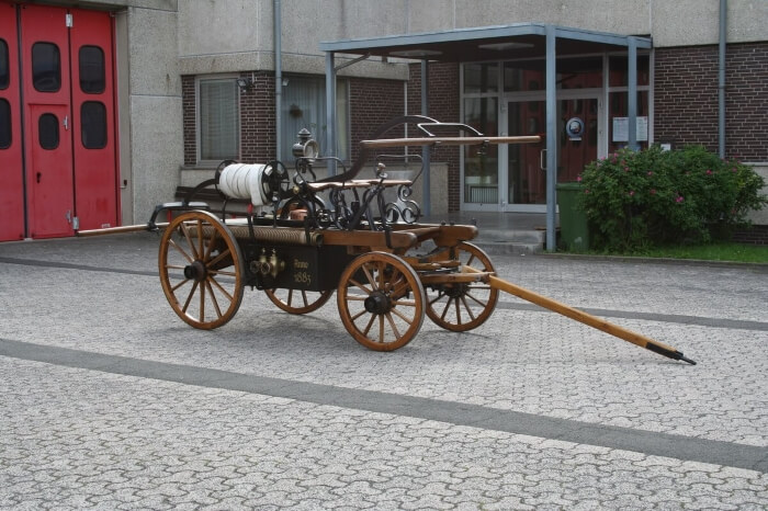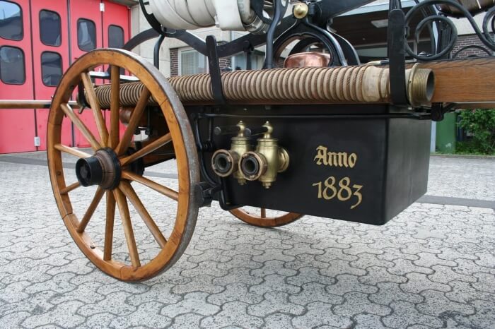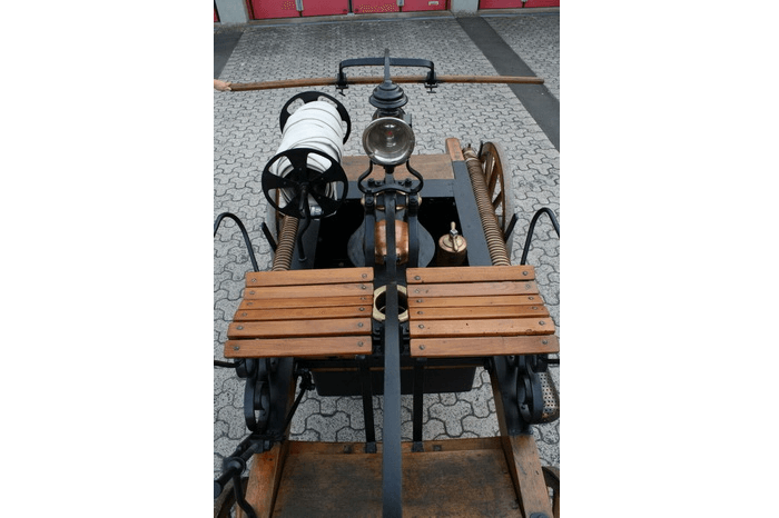 Die Gespann- Handdruck und Saugspritze wurde von Pferden zur Einsatzstelle gezogen, um sie dort zur Brandbekämpfung einzusetzen. Sie musste von einer Pumpmannschaft bedient werden, was körperlich sehr anstrengend war.